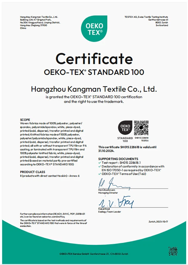 Η Kangman Textile έχει 30 χρόνια πλούσιας εμπειρίας και ιστορίας στην εκτύπωση και βαφή κλωστοϋφαντουργικών προϊόντων, με την εξυπηρέτηση, την ποιότητα, την απόδοση κόστους και την καινοτομία και ανάπτυξη προϊόντων ως τον πυρήνα της ανταγωνιστικότητας, δεσμεύεται στην έρευνα και ανάπτυξη προϊόντων υφασμάτων υψηλής ποιότητας. Η K&M textile διαθέτει επίσης το εξαρτώμενο εργοστάσιο βαφής, το εσωτερικό κέντρο δοκιμών, μια εξαιρετική ομάδα Ε & Α και μια ενεργή ομάδα πωλήσεων, μπορεί να σχεδιάζει και να αναπτύσσει υφάσματα σύμφωνα με τις απαιτήσεις των πελατών. Ταυτόχρονα, διαθέτουμε μια πλήρη γκάμα προϊόντων υφασμάτων, μια ποικιλία από δωρεάν δείγματα Α4 για να επιλέξετε.